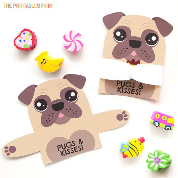 Girl Pug Candy Hugger - Valentine's Day Cute Puppy Classroom Candy Holder